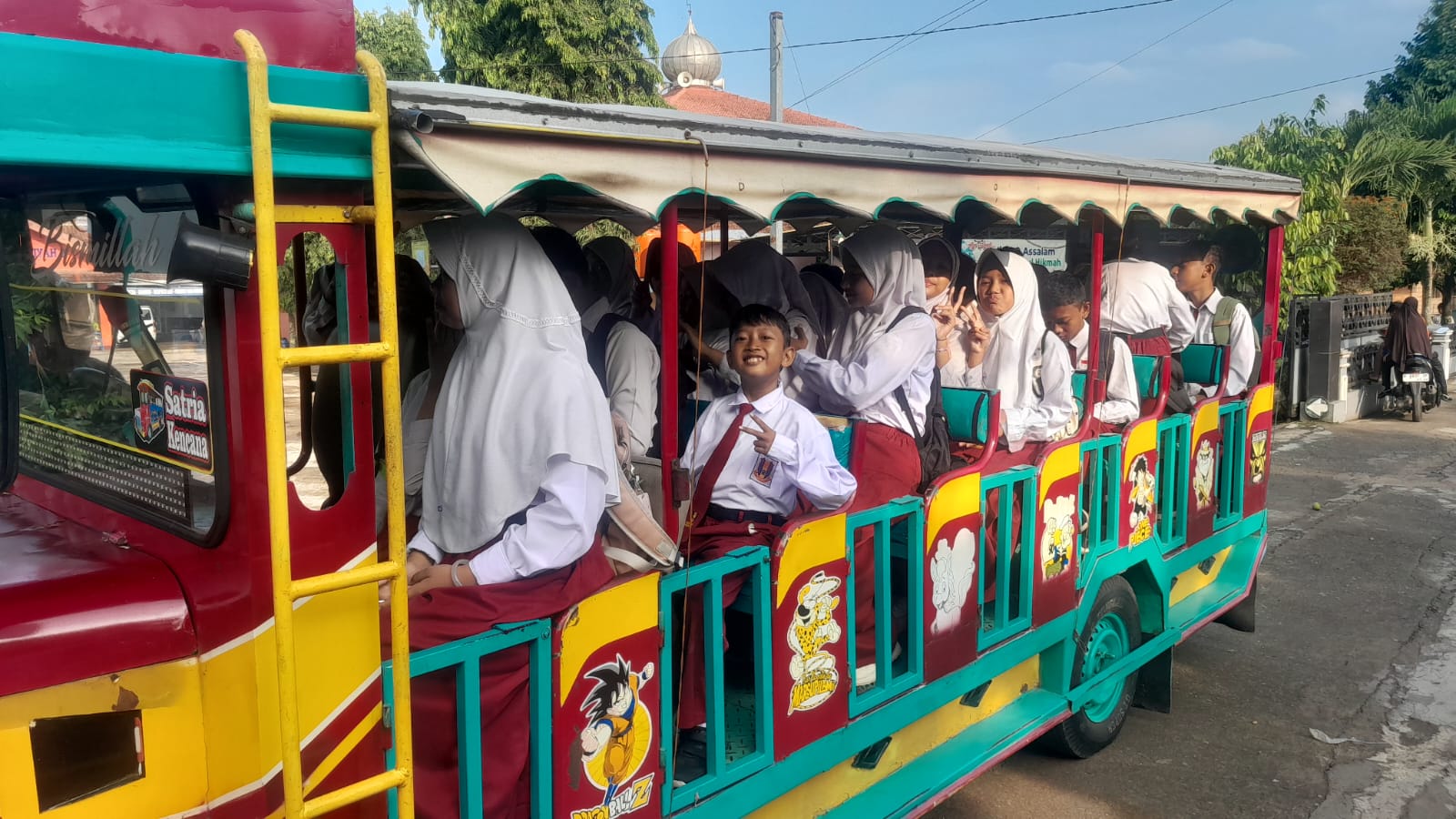 Sejak pagi, para peserta berdatangan dengan penuh semangat, didampingi orang tua dan guru masing-masing. Suasana semakin meriah ketika beberapa rombongan sekolah tiba bersama-sama menggunakan odong-odong, menciptakan nuansa kebersamaan yang hangat dan penuh keceriaan di halaman sekolah.